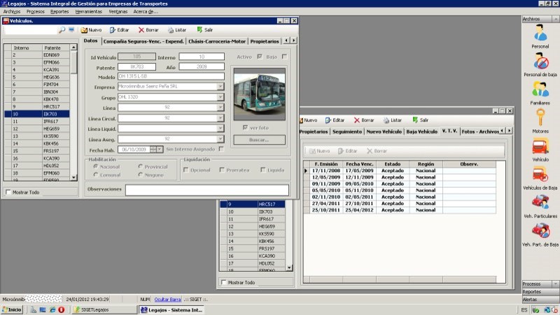 Fichas de los vehículos de la empresa, incluidos aquellos no dedicados al transporte